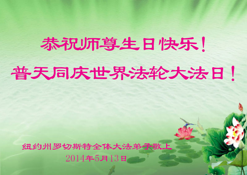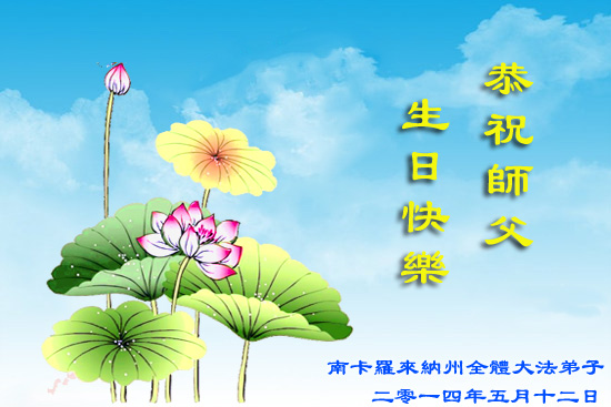 明媚的五月迎來偉大、慈悲的師尊的華誕、師尊傳大法二十二週年紀念日,暨第十五屆世界法輪大法日!普天同歡慶、宙宇沐洪恩!我們南卡羅來納州全體大法弟子,一定牢記師尊的教誨,配合好,正念足,向內找,整體精進,助師正法,救度眾生,完成自己的使命,做合格的「正法時期的大法弟子」,讓師尊少操一點兒心!