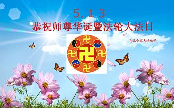 全家八名大法弟子恭祝偉大師尊生日快樂,慶賀「五一三世界法輪大法日」。我們一定在多救人上多下功夫,做好三件事回報師恩。