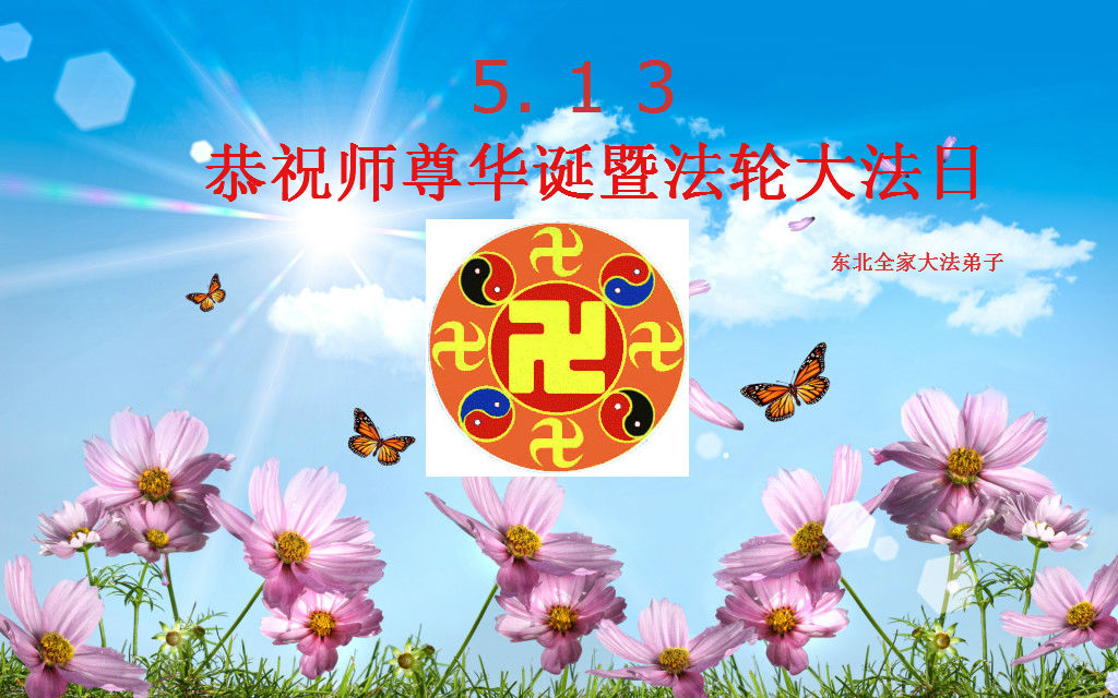 5.13世界同慶的日子,一個東北小鎮的大法弟子及家人向慈悲偉大的師尊謝恩!感謝師尊的慈悲苦度!在這裏說一聲師尊辛苦了!