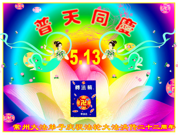 常州大法弟子慶賀師尊生日快樂,慶祝法輪大法洪傳二十二週年!