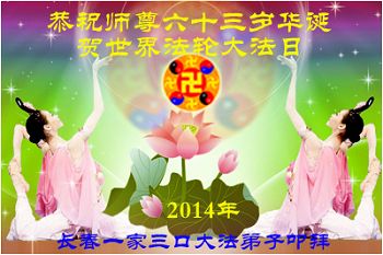 遼寧丹東全家三口大法弟子恭賀偉大慈悲的師尊華誕快樂!