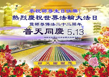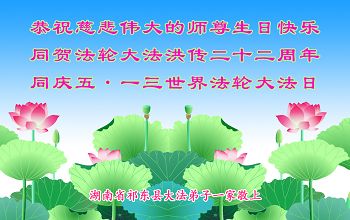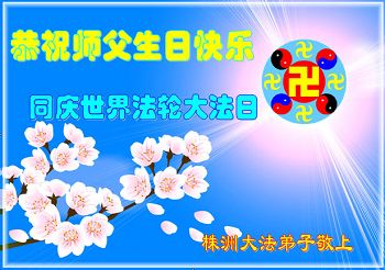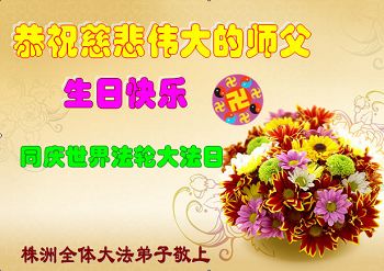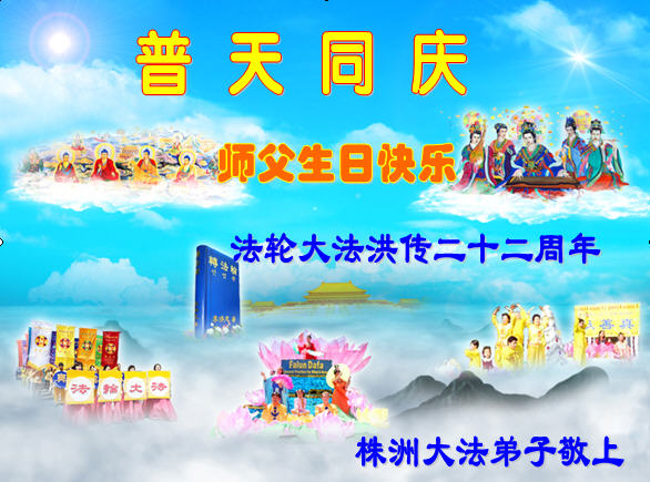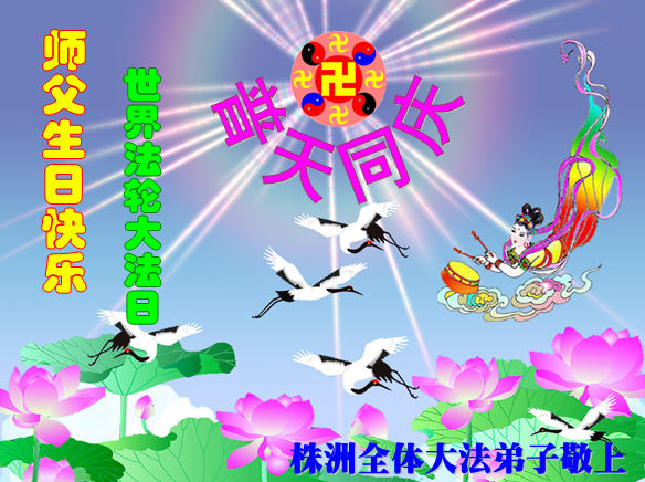 湖南株洲大法弟子恭祝慈悲偉大的師父生日快樂!同慶世界法輪大法日!