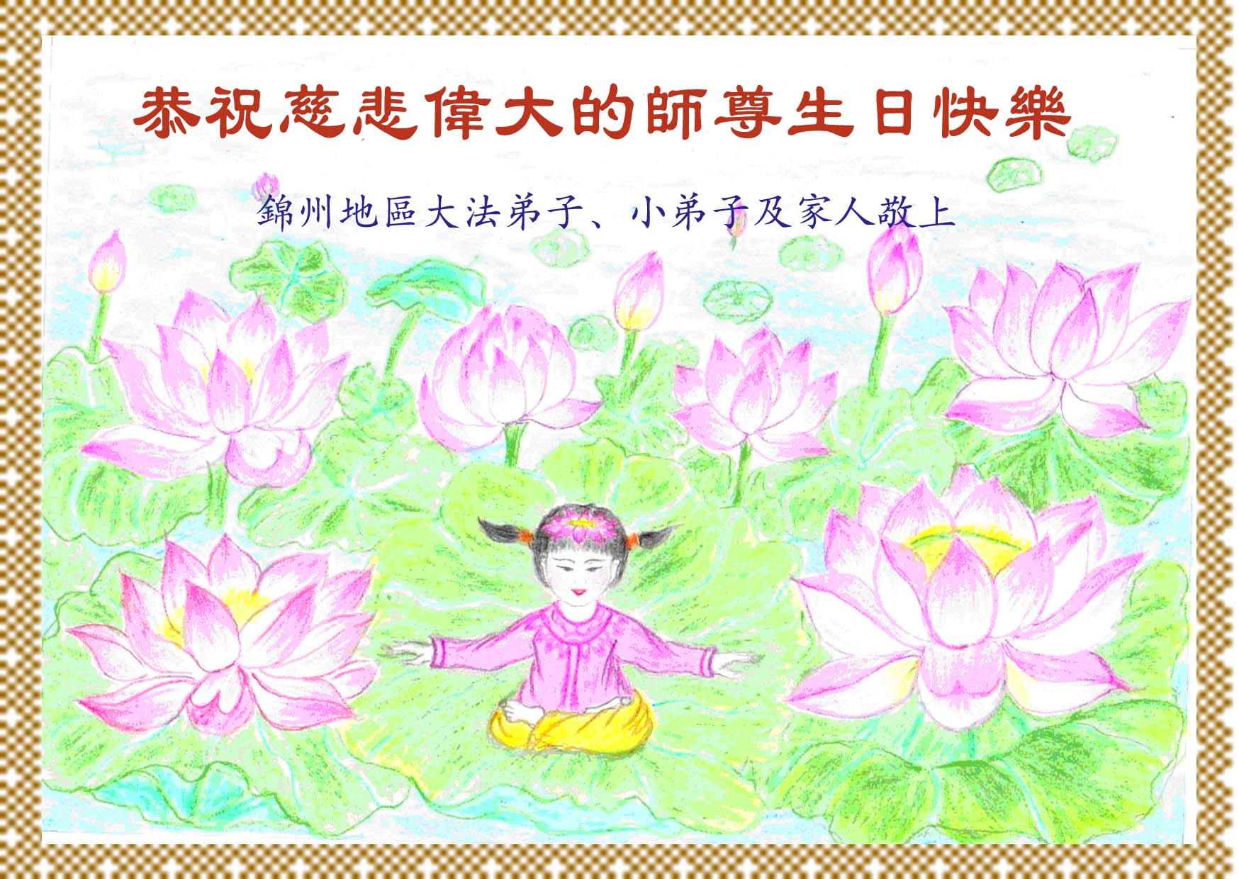 遼寧省盤錦大法弟子恭祝慈悲偉大的師尊生日快樂!
