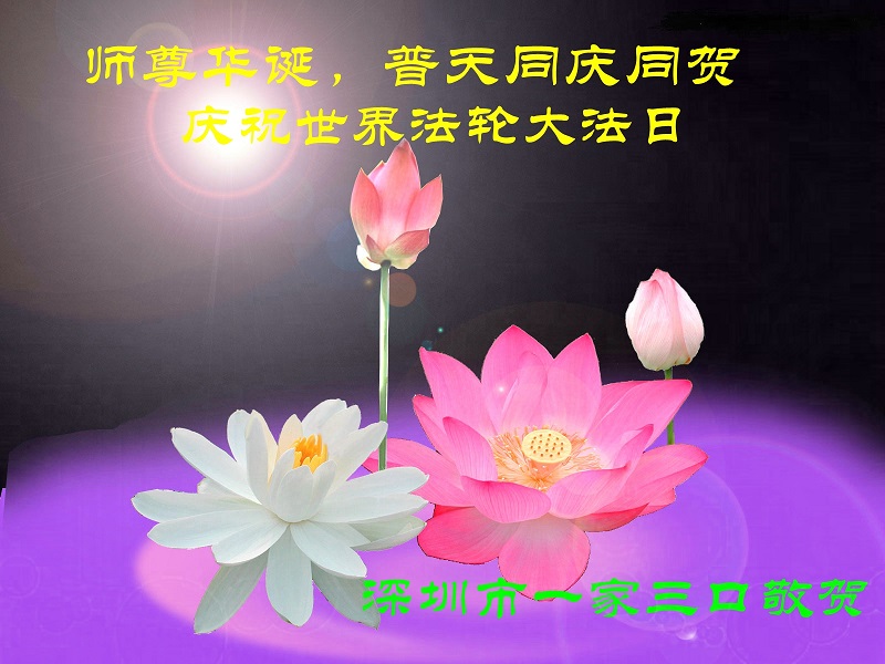 深圳大法弟子一家三口普天同慶5.13世界法輪大法日!