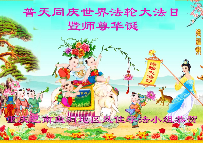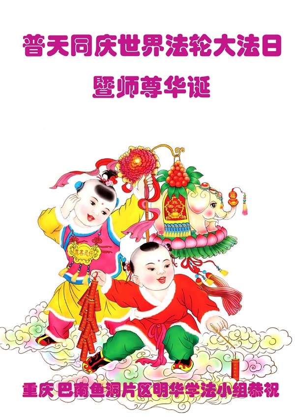 重慶巴南魚洞地區學法小組同慶世界法輪大法日!恭祝師尊生日快樂!