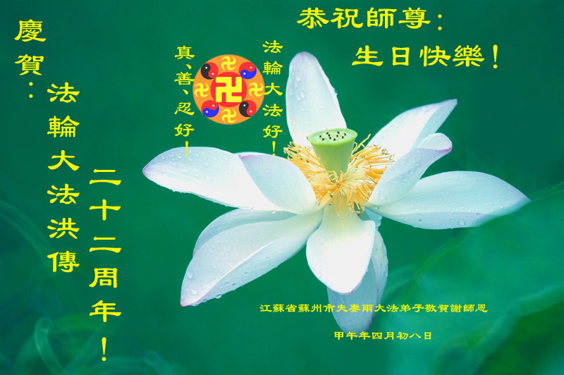 恭祝慈悲偉大的師尊生日快樂!同賀法輪大法洪傳二十二週年暨第十五屆世界法輪大法日!