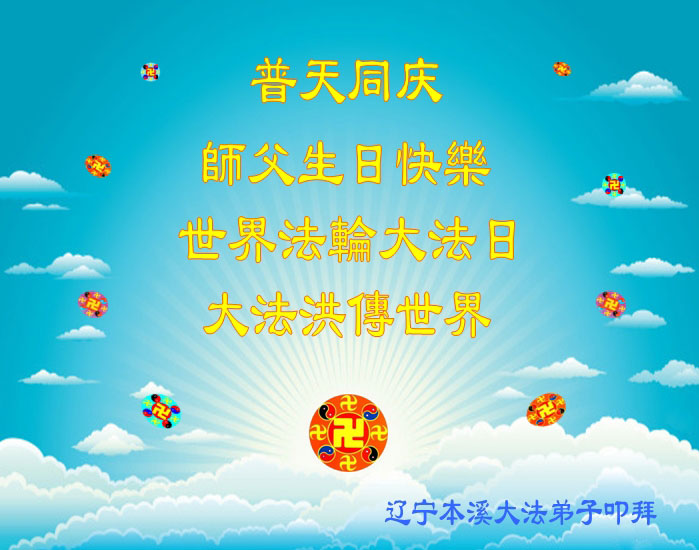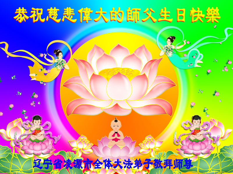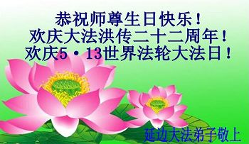 值此師尊華誕和大法洪傳二十二年之際,遼寧朝陽大法弟子叩拜恩師!恭祝慈悲偉大的師尊生日快樂!在助師正法最後一刻這僅有的時間裏,弟子唯有精進再精進,修好自己多救人,以報師恩!