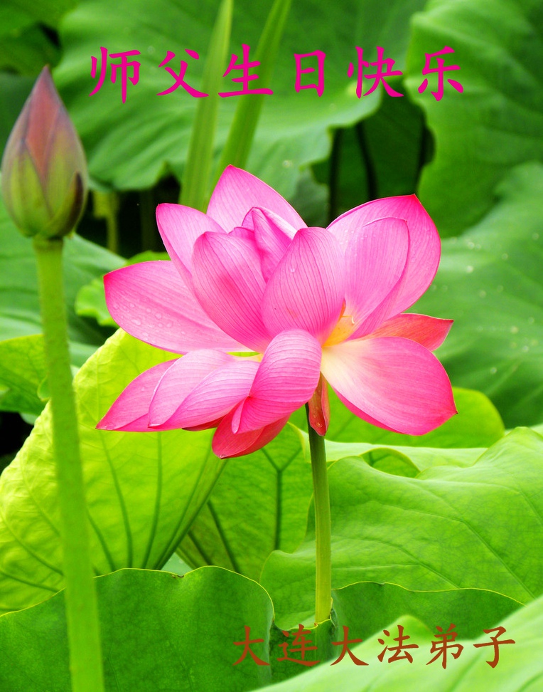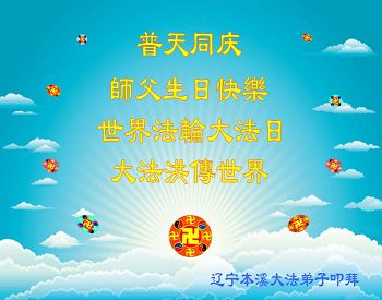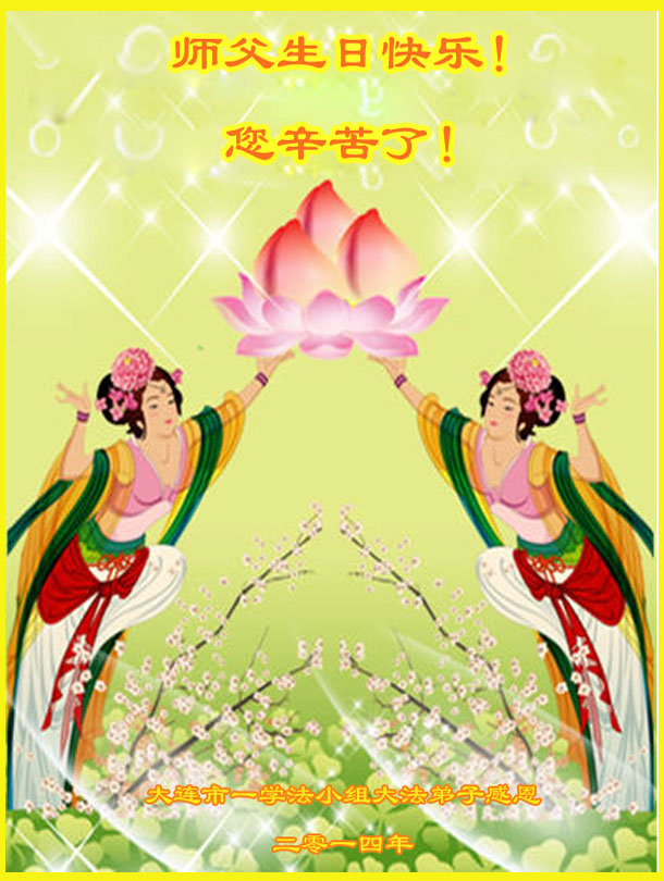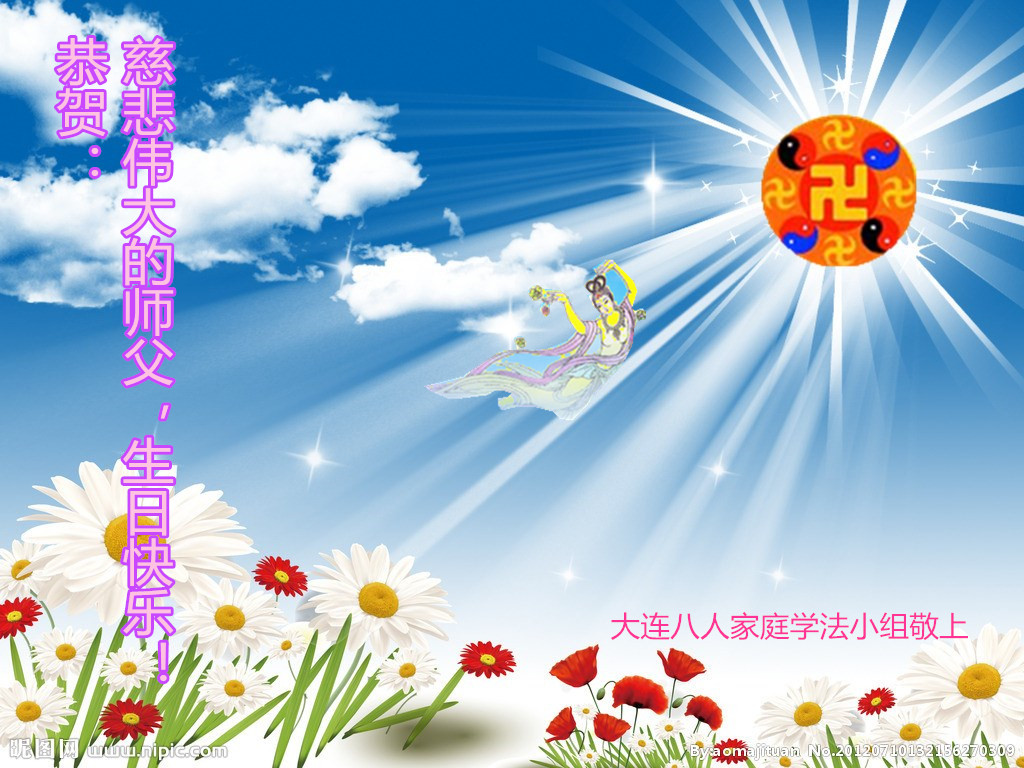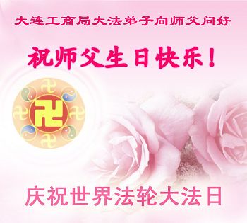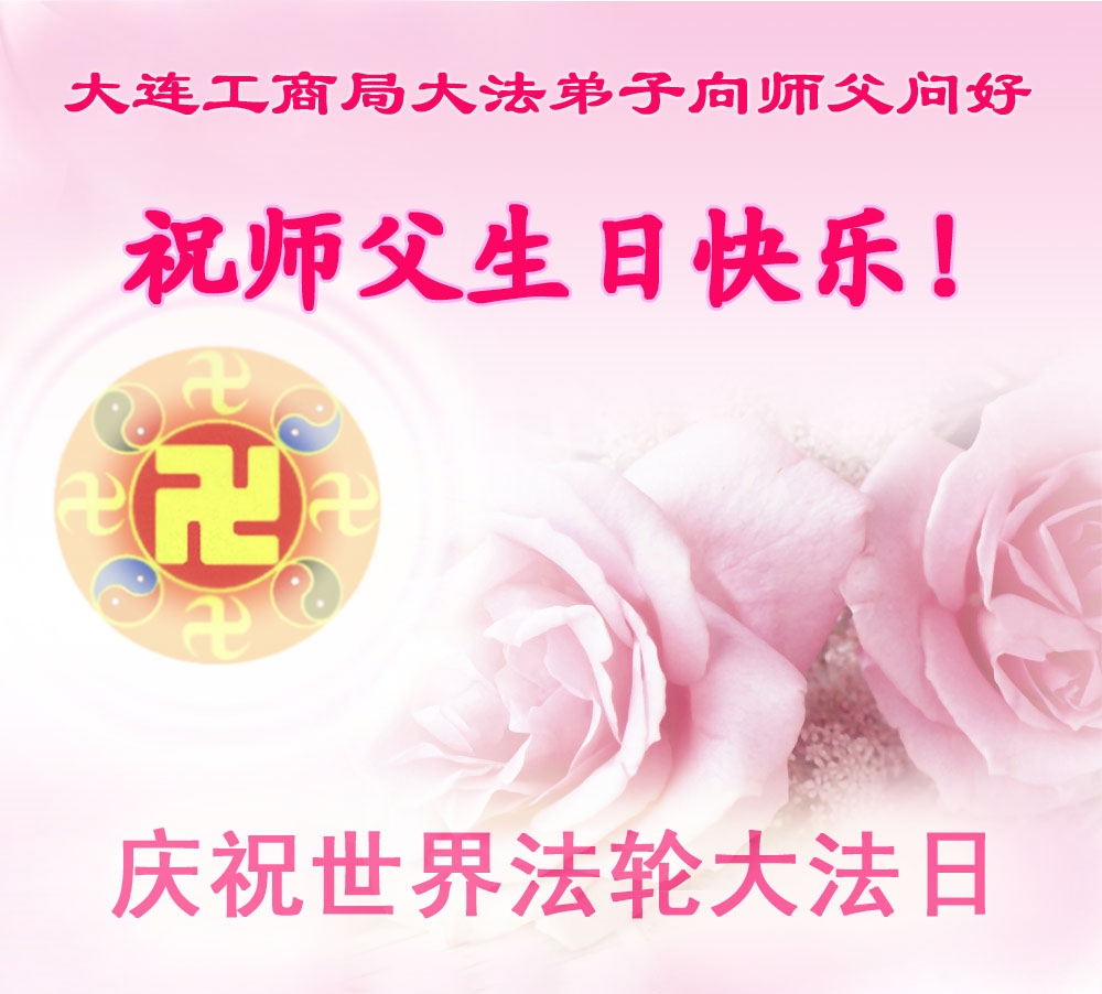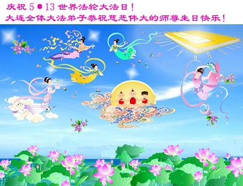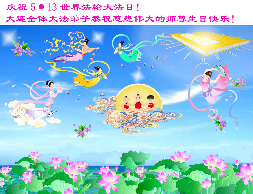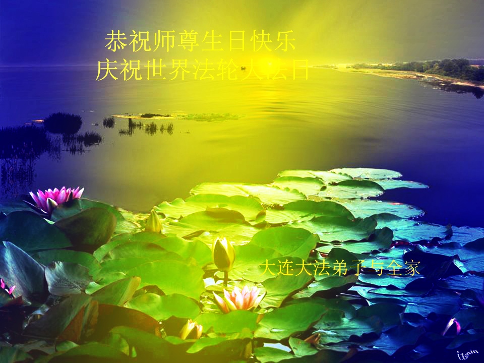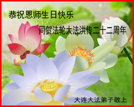 遼寧省大連市金南路一學法小組全體大法弟子恭祝慈悲偉大的師尊生日快樂!暨世界法輪大法日!