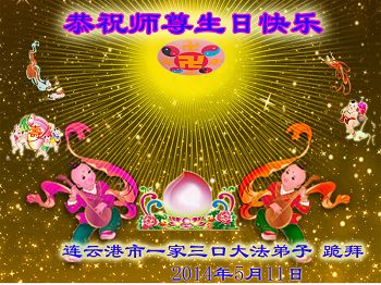 我們一家三口大法弟子恭祝師尊生日快樂!同慶世界法輪大法日!師父救度眾生辛苦了!靜蓮弟子全家一直跟隨師尊修到底,做好三件事,多救人。