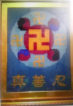 大連甘井子山東路用珠子製作了真善忍法輪圖,祝願師尊生日快樂!