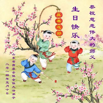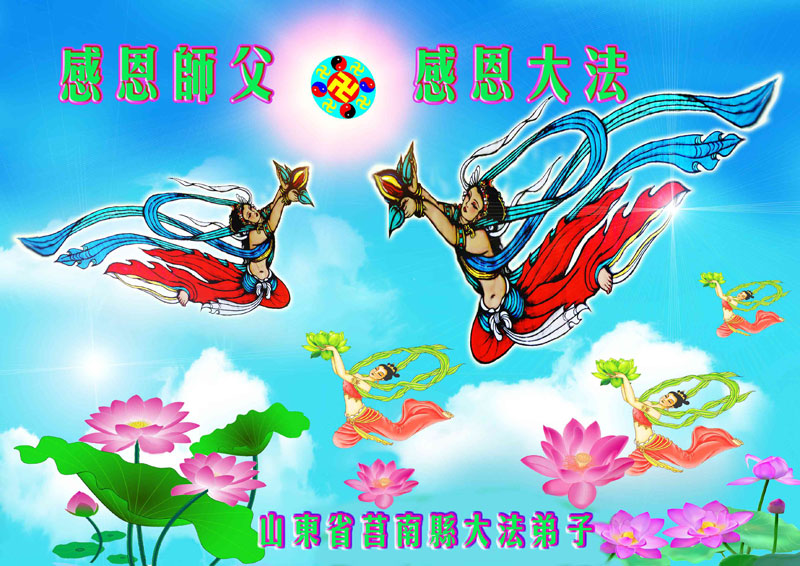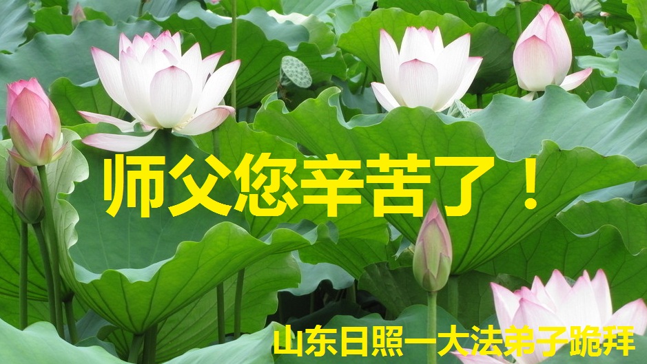 師尊您好!我們蘭陵縣(原蒼山縣)全體大法弟子想念您!我們一定牢記師尊的教導,學好法,向內找,整體配合,做好三件事,多救人,讓師父少一分操勞,多一分欣慰。