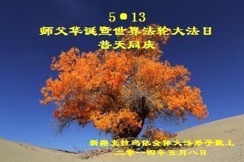 在這普天同慶的日子裏,新疆大法弟子向師尊問好!您辛苦了!我們一定會做好三件事,走好回家的路,請您放心。