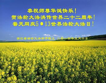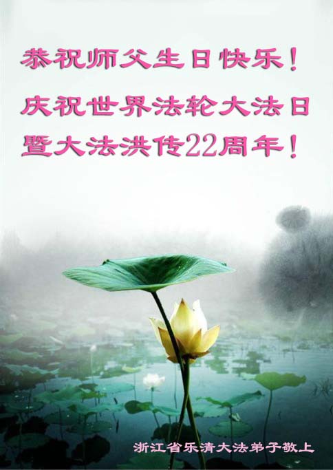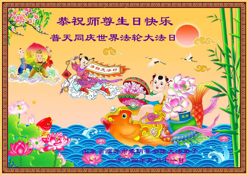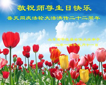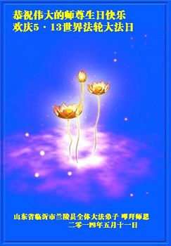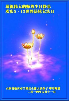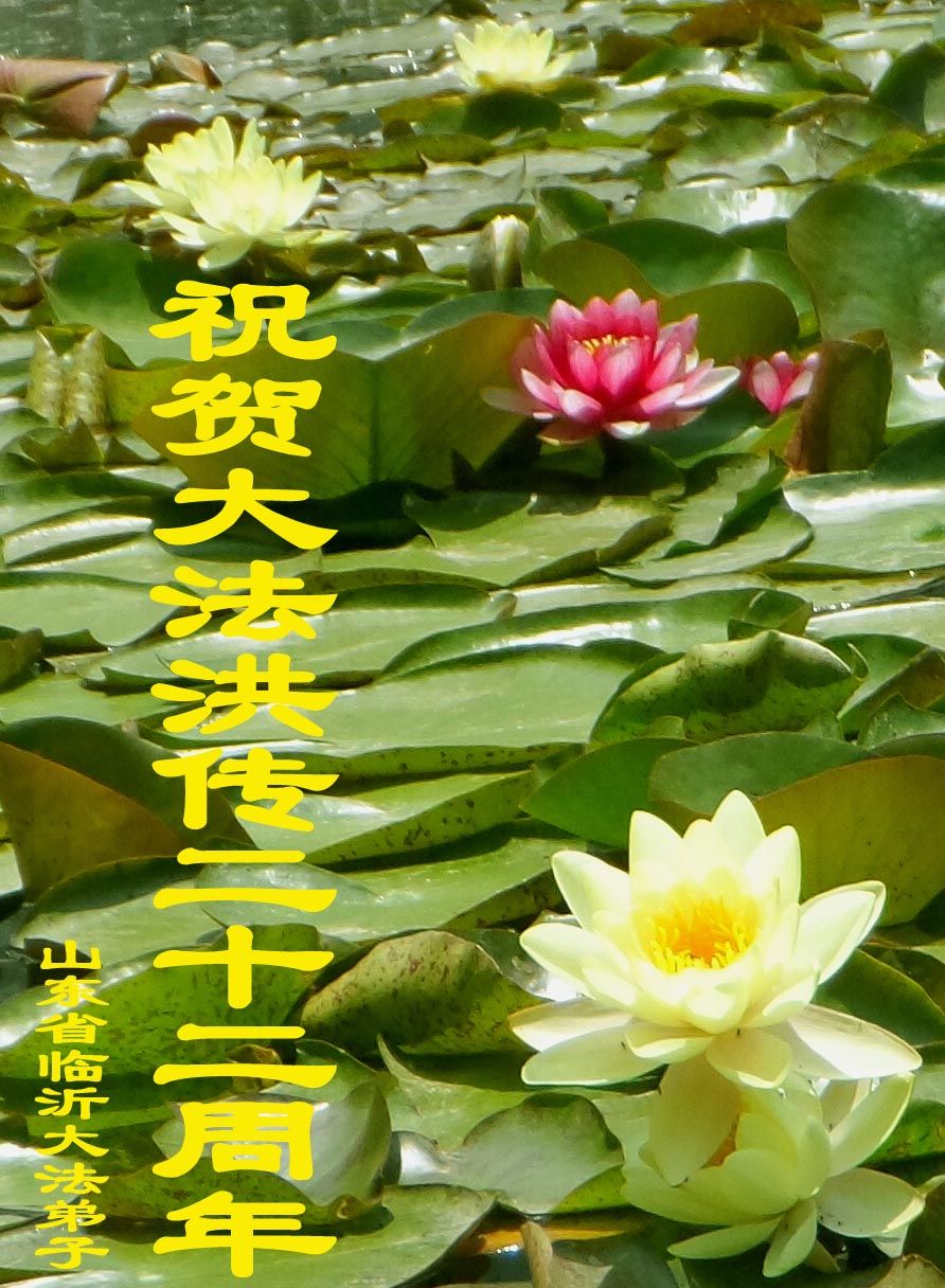 值此法輪大法洪傳二十二週年之際,臨沂地區全體大法弟子與得救的眾生敬賀師尊華誕,普天同慶世界法輪大法日。