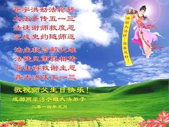 四川資陽大法弟子恭祝師尊生日快樂!感謝師尊慈悲救度!