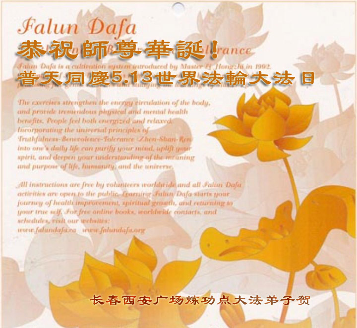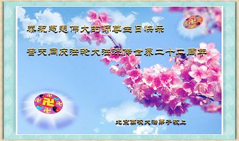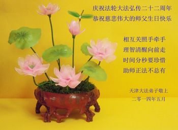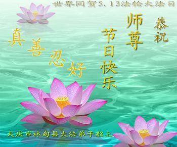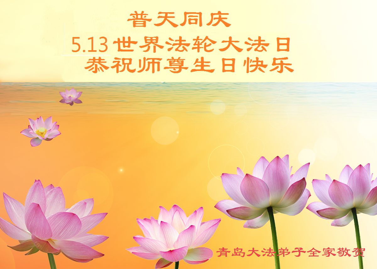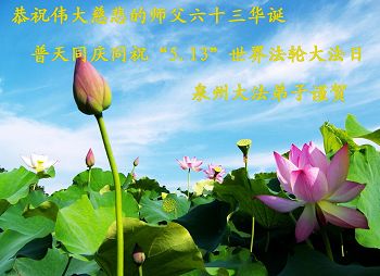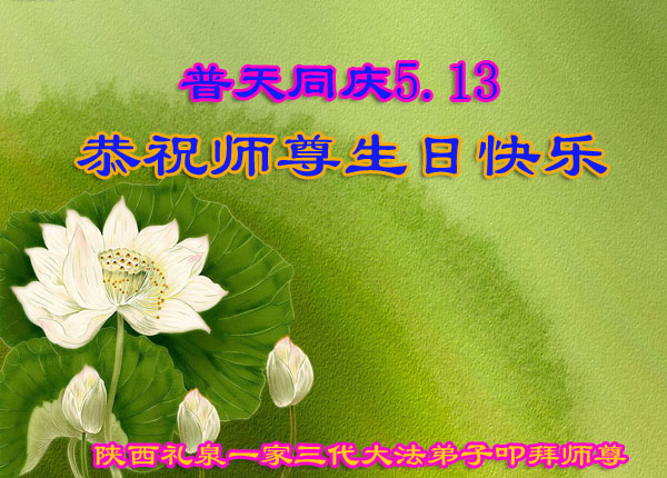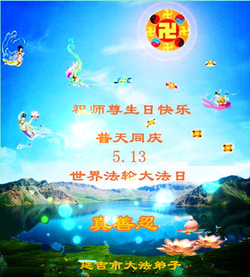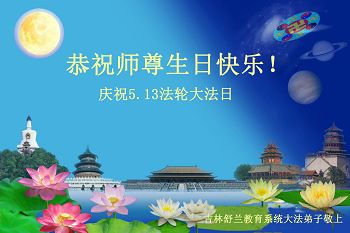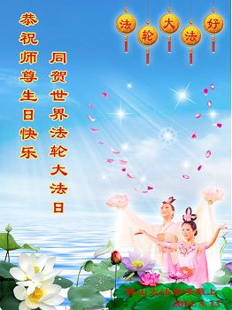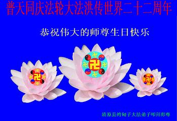 在普天同慶法輪大法洪傳的日子裏,我們全家大法弟子叩拜師父,並恭賀師父華誕暨世界法輪大法日!