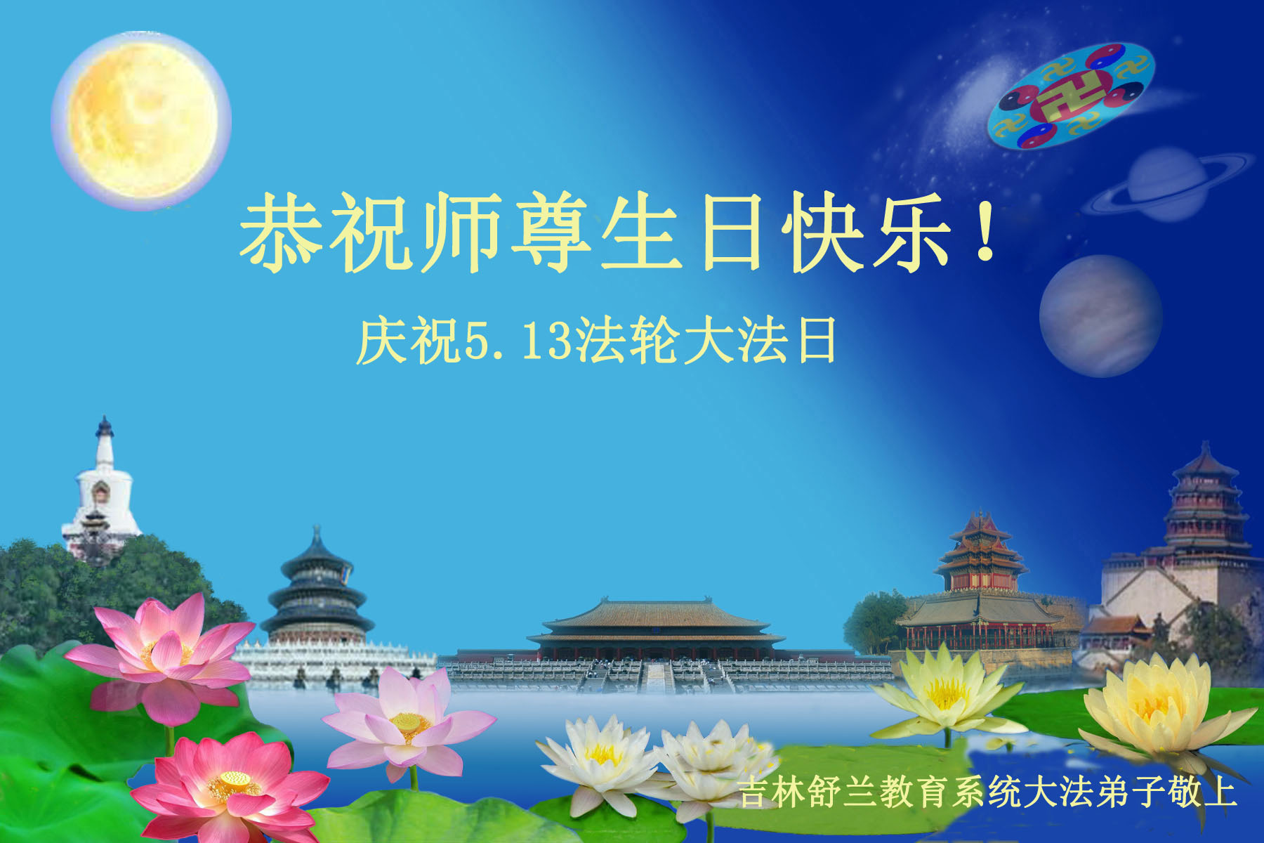 恭祝慈悲偉大的師尊華誕和法輪大法洪傳二十二週年,同賀世界法輪大法日!