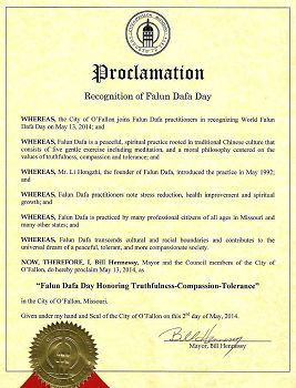 鑑於,奧法隆市和法輪大法修煉者於二零一四年五月十三日共同慶祝世界法輪大法日;並且