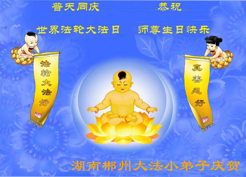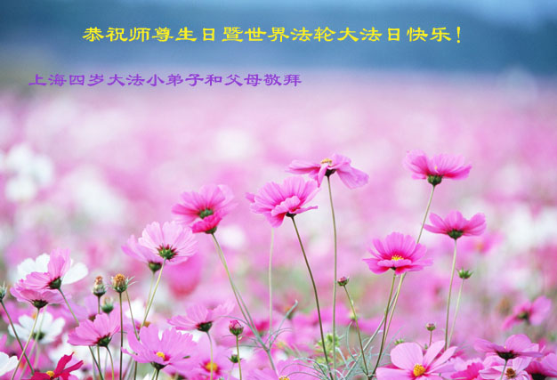 感恩師尊對弟子無微不至的慈悲呵護,佛光普照,法光融融,天地同慶、同賀、同頌這個偉大的日子──「5•13世界法輪大法日」!眾生用盡生命的一切都無法回報的佛恩浩蕩!在最後有限的時間裏,弟子一定多學法,多去執著心,走正走好今後的每一步,圓容的做好三件事,讓偉大慈悲的師尊少一份操勞,多一份欣慰,圓滿的跟隨師尊回家。
