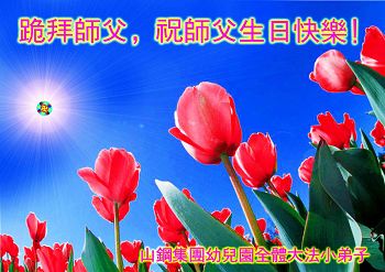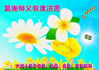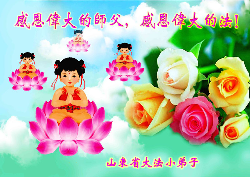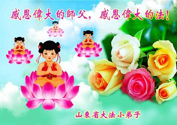 弟子把最美的鮮花敬獻給偉大慈悲的師尊!弟子按照師尊的慈悲叮囑,多學法,遇到問題向內找,多發正念除惡。師尊讓弟子無論做甚麼都要為別人著想,做一個無私無我先他後我的人,弟子本著這個標準與小朋友們相處,小朋友與老師都非常喜歡弟子。他們都在不停的說,煉法輪功的小朋友哪像中共邪黨宣傳的那樣啊!可不要再聽信邪黨的謊言了,煉法輪功的小朋友多好啊,像這樣的人越多越好,做甚麼事先為別人著想。弟子知道距離師尊所要求的標準還差的很遠,弟子今後要精進、精進、再精進,更好的證實大法救度眾生,做好三件事跟師尊回家!