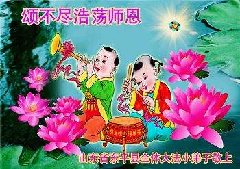 能夠做師父的小弟子我們感到無比的幸福和自豪!我們認為無論在哪裏都要做好,都不能給大法抹黑。弟子謹遵師尊教誨,多學法,做好三件事,讓周圍的世人明白真相,認清中共邪黨的邪惡本質,給自己選擇美好的未來。在今後不多的時間裏,弟子將更加嚴格要求自己,爭取讓更多的眾生得救,不負師尊對弟子的厚望!
