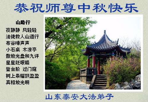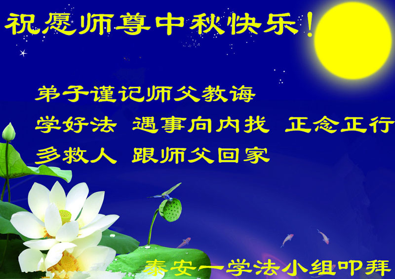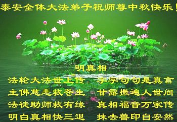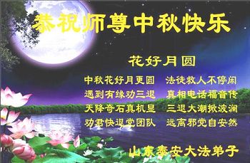 山東泰安大法弟子恭祝師尊中秋快樂!