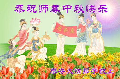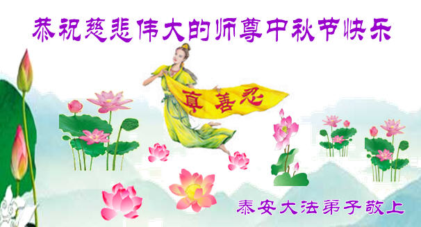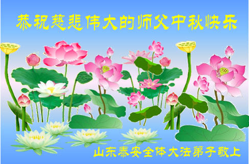山東省泰安市全體大法弟子恭祝慈悲偉大的師尊中秋快樂!