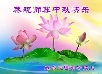 在中秋節來到之際,我們夫婦倆向偉大的師尊問好!在正法的最後時刻,我們要學好法,堅持實修,不斷向內找,去掉各種人心,做好三件事。助師世間行,兌現史前誓約,圓滿隨師還。