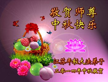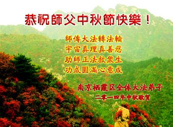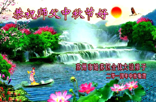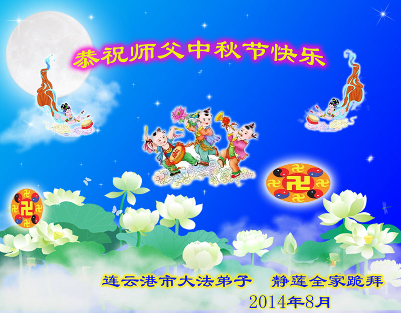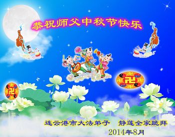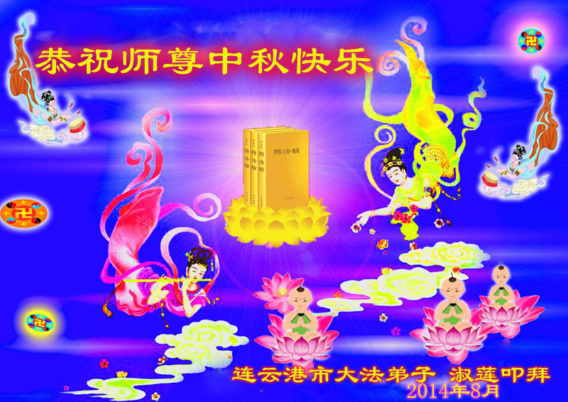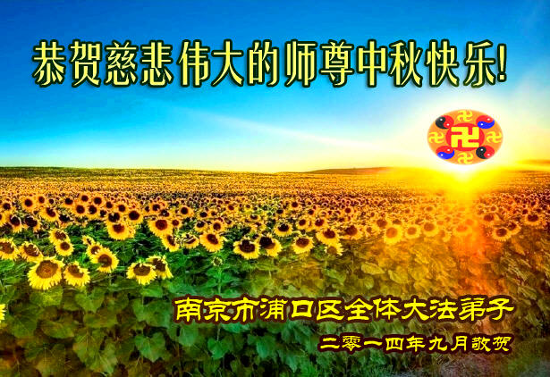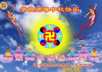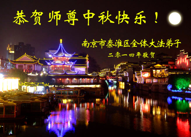 揚州地區大法弟子恭祝慈悲偉大的師尊中秋節快樂,謝謝師尊的慈悲苦度,熱盼師尊早回中原故土。
