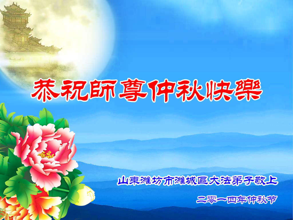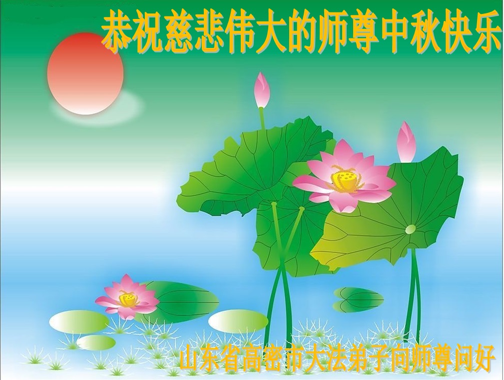 師父您為眾生、為弟子承受的太多太多!師父您辛苦了!弟子偕同母親、姐姐、哥哥、兒子及學法小組的全體同修一起,恭祝慈悲偉大的師父中秋節快樂!