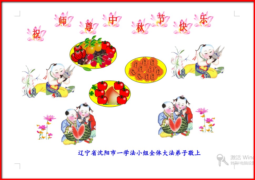 瀋陽沈河區一學法小組大法弟子恭祝慈悲偉大的師尊中秋節快樂!弟子抓緊一切時間學好法,救度眾生,以謝師恩!