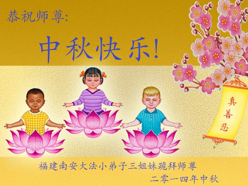 福建南安三名小大法弟子恭祝師尊中秋快樂!