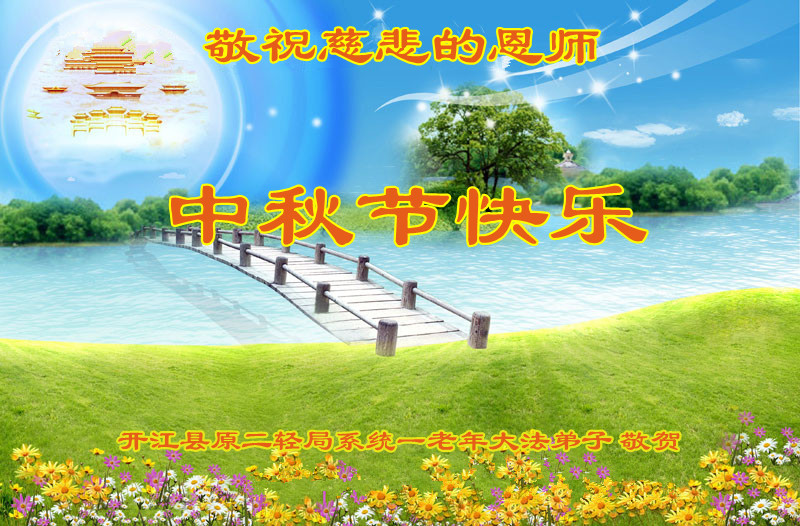 四川省達州市開江縣原二輕局系統一老年大法弟子敬祝慈悲的恩師中秋節快樂!