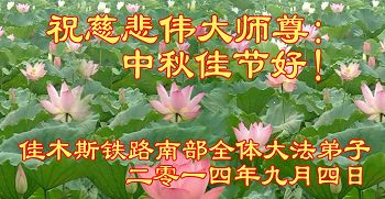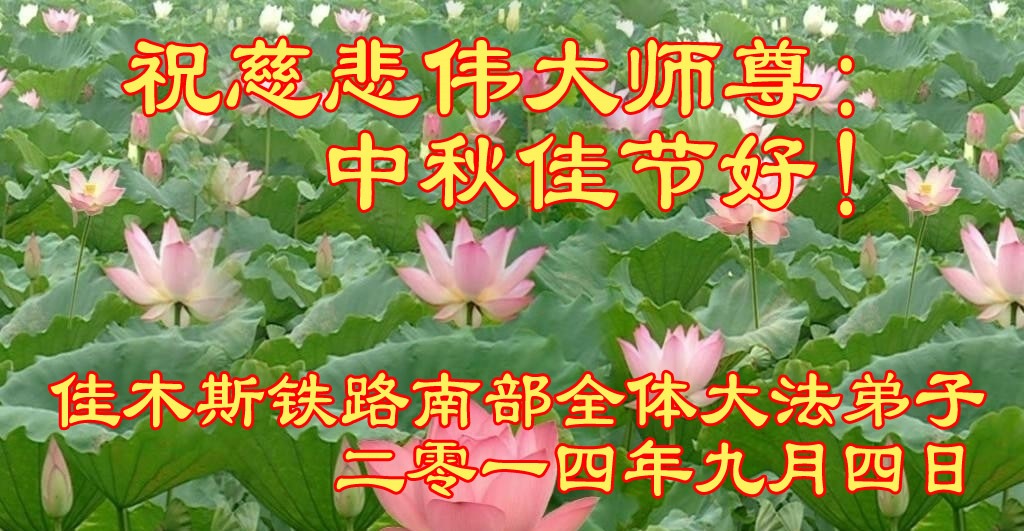 值此二零一四年中秋佳節即將到來之際,中國大陸鐵路系統全體大法弟子恭祝至尊至上慈悲偉大的師尊中秋節快樂!