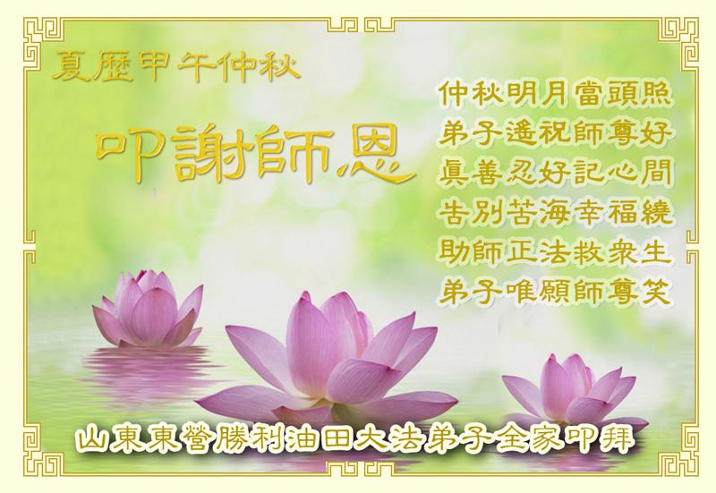 山東東營市暨勝利油田大法弟子恭祝師尊中秋快樂!