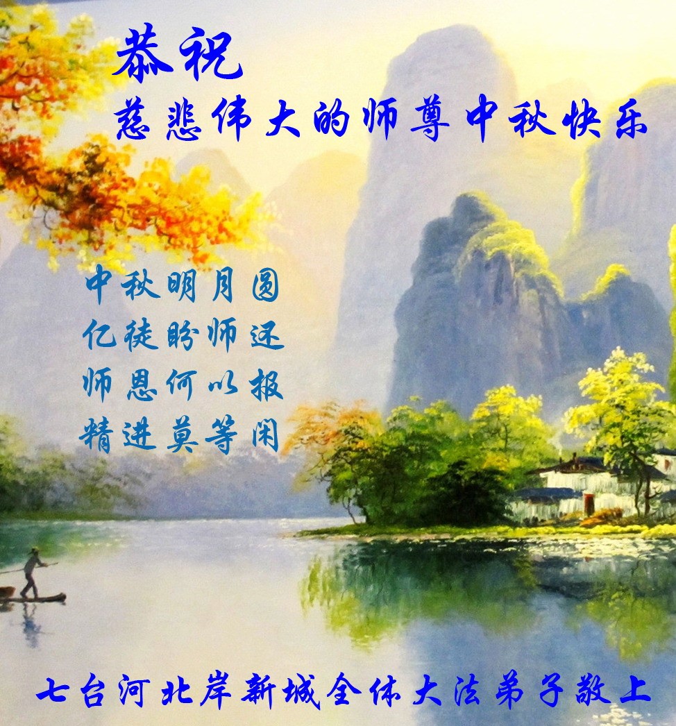 七台河北岸新城全體大法弟子恭祝慈悲偉大的師尊中秋快樂!