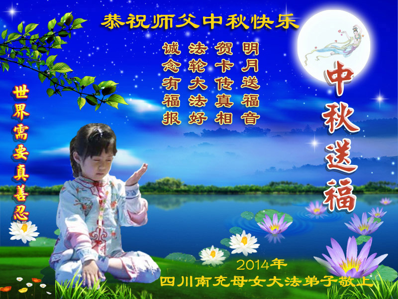 四川省南充母女大法弟子恭祝師父中秋節快樂!