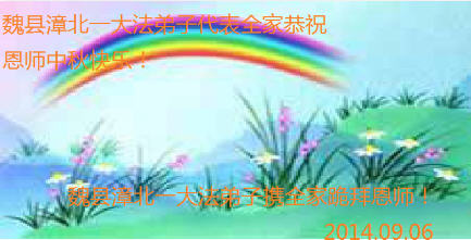河北省邯鄲市魏縣漳北一大法弟子攜全家祝師父中秋快樂!