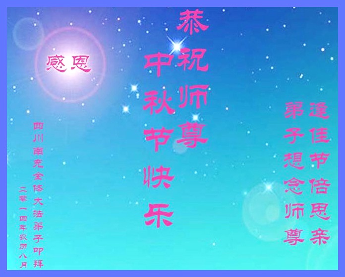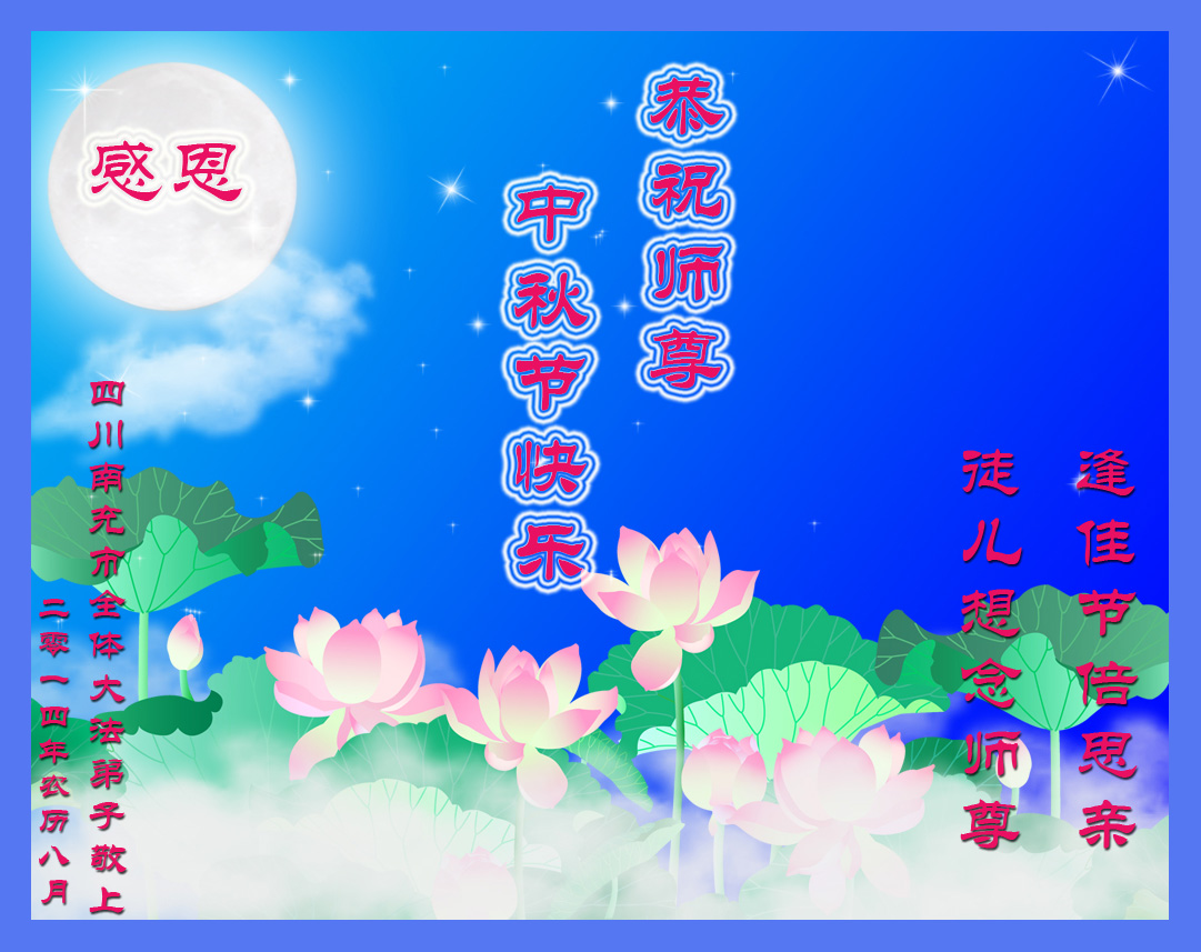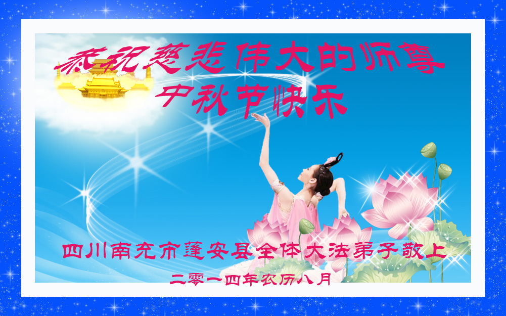 師父好!師父辛苦了!四川省達州市全體大法弟子恭祝慈悲、偉大的恩師中秋佳節快樂!