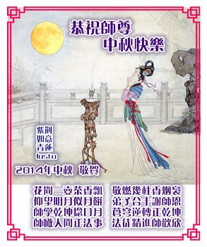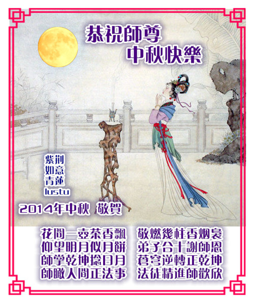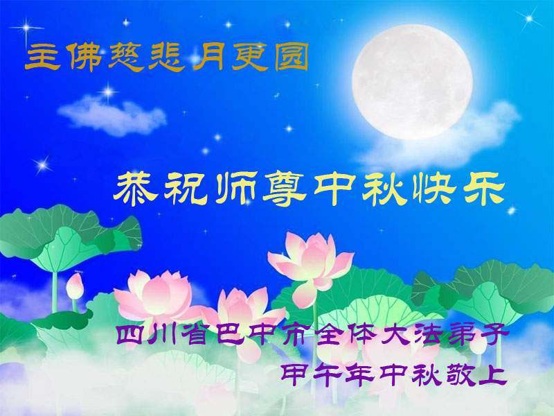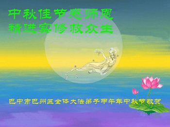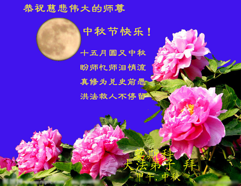 恭祝您中秋節快樂!轉眼中秋節又快到了,修煉大法已經是第18個年頭了,非常慶幸自己在這個亂世中能得法,並跟隨師父修煉。如果沒有師父的時時呵護,自己不可能走到今天。