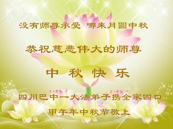 四川巴中一大法弟子攜全家四口恭祝慈悲偉大的師尊中秋快樂!