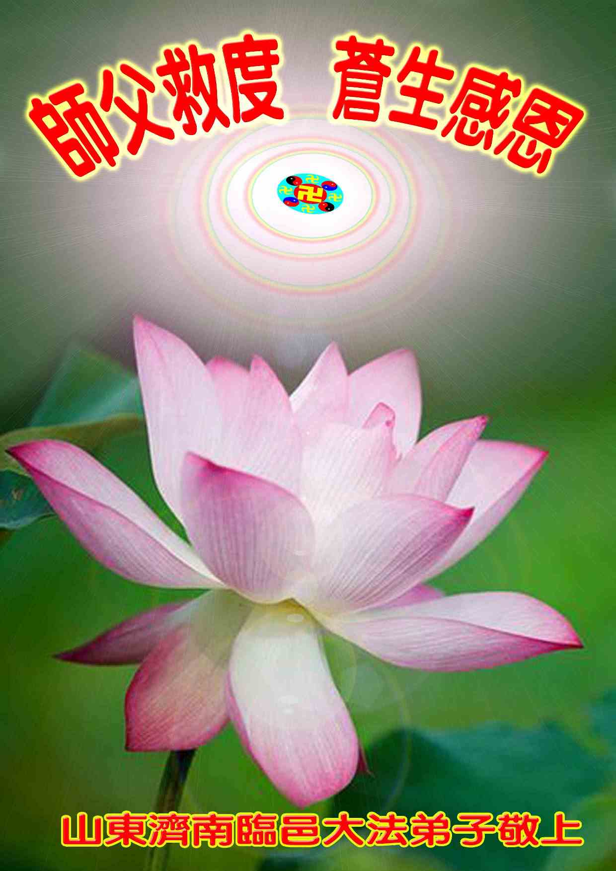 弟子感恩師尊慈悲救度!弟子一定聽師父的話,多學法,與其他的同修互相配合、互相圓容,共同提高,做好三件事,完成救度眾生的神聖使命,恭迎法正人間的輝煌時刻!