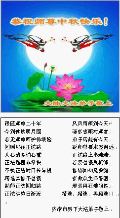 我們這裏的大法弟子一定會謹記師尊的教誨,會做好大法弟子應該做好的三件事。師尊您辛苦了!值此佳節,恭祝師尊中秋節快樂!弟子們跪拜師尊!合十!