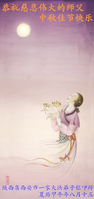 我們會做好大法弟子應該做好的三件事。敬請恩師多一點欣慰,少一點操勞!師尊您辛苦啦!值此佳節,恭祝師尊中秋節快樂!弟子們跪拜師尊!