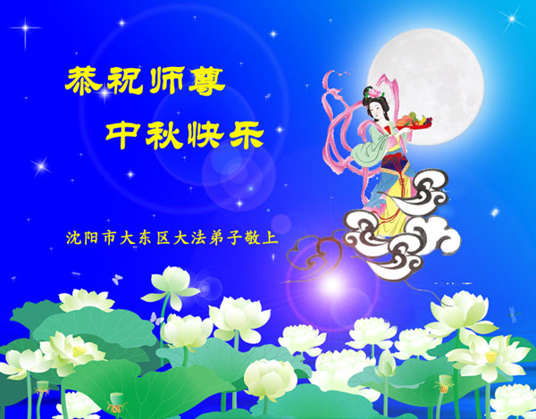 遼寧瀋陽大東區大法弟子恭祝師尊中秋節快樂!