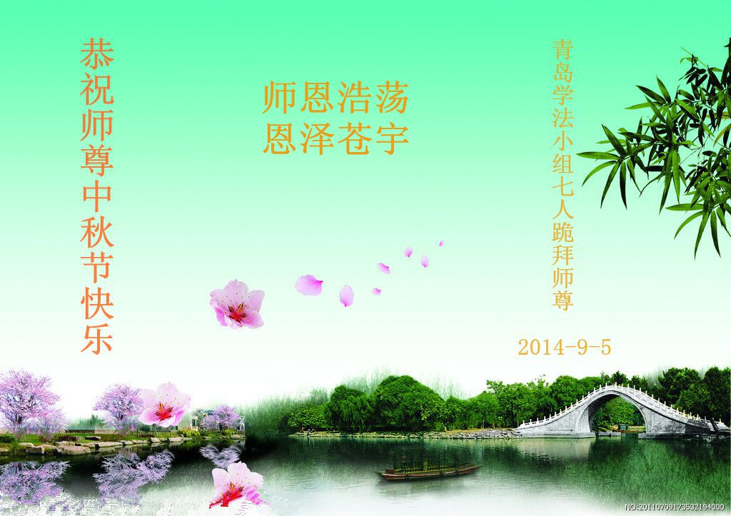 山東省青島學法小組大法弟子7人恭祝師父中秋節快樂!