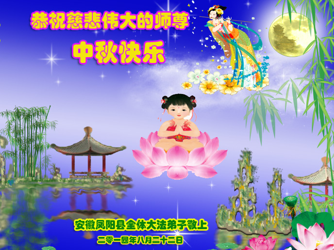 安徽省鳳陽縣全體大法弟子恭祝慈悲偉大的師尊中秋節快樂!