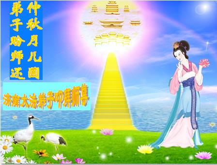 山東省濟南一大法弟子學法小組恭祝慈悲偉大的師尊中秋快樂!