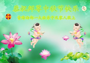 青海西部地區一大法弟子及家人恭祝慈悲偉大的師尊中秋節快樂!