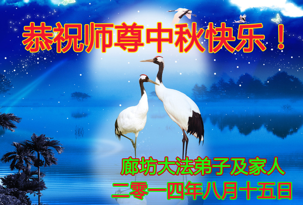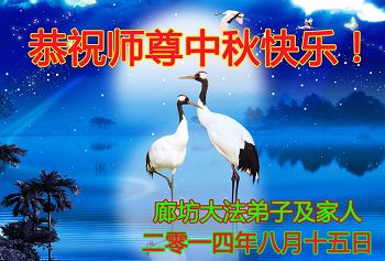 三河大法弟子一定努力形成整體,協調配合好,做好三件事,更多的救度眾生,用我們的修煉成果報答師尊的救度之恩!師父辛苦了!全體三河大法弟子叩拜師尊,祝偉大師尊中秋好!
