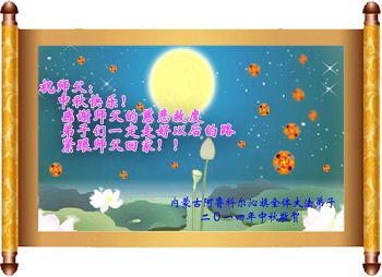 在中秋來臨之際,我們全家三口大法弟子祝慈悲偉大的師尊中秋快樂!